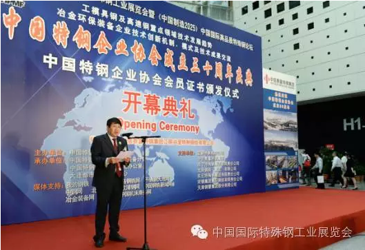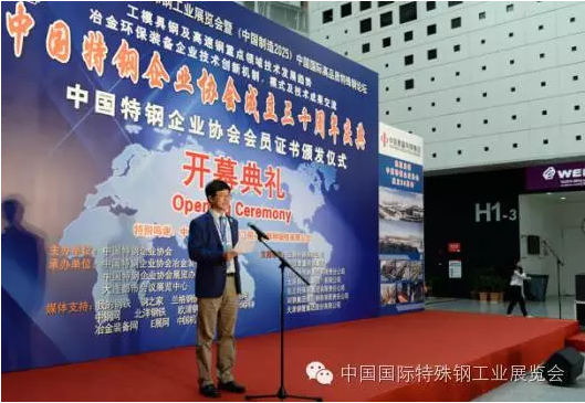 中國(guó)國(guó)際特殊鋼工業(yè)展覽會(huì)開幕式由九屆六次執(zhí)行會(huì)長(zhǎng)寶鋼特鋼總經(jīng)理龐遠(yuǎn)林主持,中國(guó)特鋼企業(yè)協(xié)會(huì)會(huì)長(zhǎng)中信泰富特鋼集團(tuán)董事長(zhǎng)俞亞鵬致開幕詞,中國(guó)鋼鐵工業(yè)協(xié)會(huì)副會(huì)長(zhǎng)王利群和中國(guó)鋼研科技集團(tuán)副總經(jīng)理田志凌致賀詞。參加開幕式剪彩的領(lǐng)導(dǎo)及嘉賓有:寶鋼特鋼有限公司總經(jīng)理龐遠(yuǎn)林、中信泰富特鋼集團(tuán)董事長(zhǎng)俞亞鵬、西寧特殊鋼集團(tuán)有限責(zé)任公司董事長(zhǎng)、黨委書記楊忠、中國(guó)鋼鐵工業(yè)協(xié)會(huì)副會(huì)長(zhǎng)王利群、中國(guó)鋼鐵工業(yè)協(xié)會(huì)副會(huì)長(zhǎng)、冶金規(guī)劃研究院院長(zhǎng)李新創(chuàng)、中國(guó)鋼研科技集團(tuán)有限公司副總經(jīng)理田志凌、中信泰富特鋼集團(tuán)總裁錢剛、東北特殊鋼集團(tuán)有限責(zé)任公司總工程師董學(xué)東、太原鋼鐵(集團(tuán))有限公司副總柴志勇、舞陽鋼鐵有限責(zé)任公司董事長(zhǎng)鄧建軍、天津鋼管集團(tuán)有限公司副總工程師楊在安、中國(guó)特鋼企業(yè)協(xié)會(huì)不銹鋼分會(huì)常務(wù)副會(huì)長(zhǎng)劉復(fù)興、河鋼集團(tuán)石鋼公司總工程師齊建軍等。開幕式后全體參觀了展覽會(huì)。